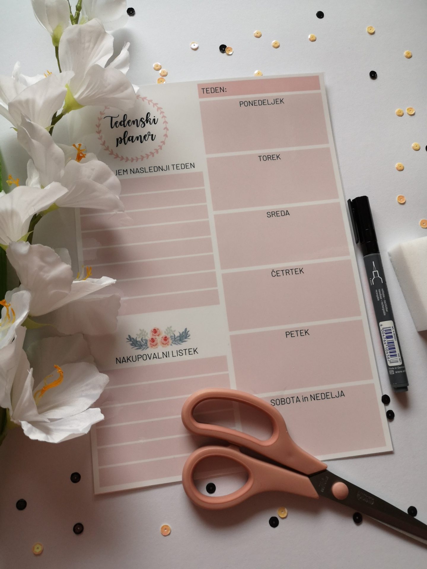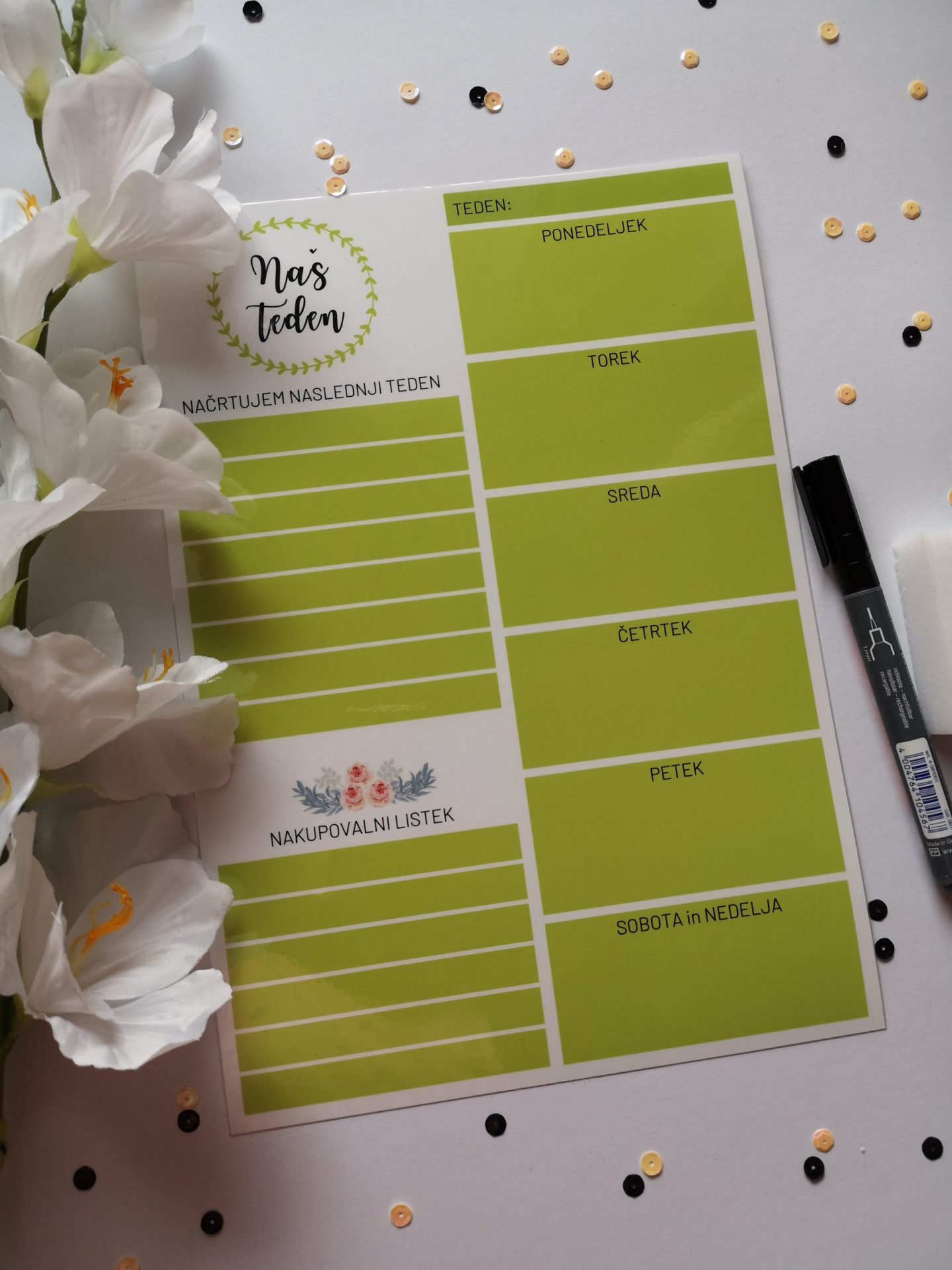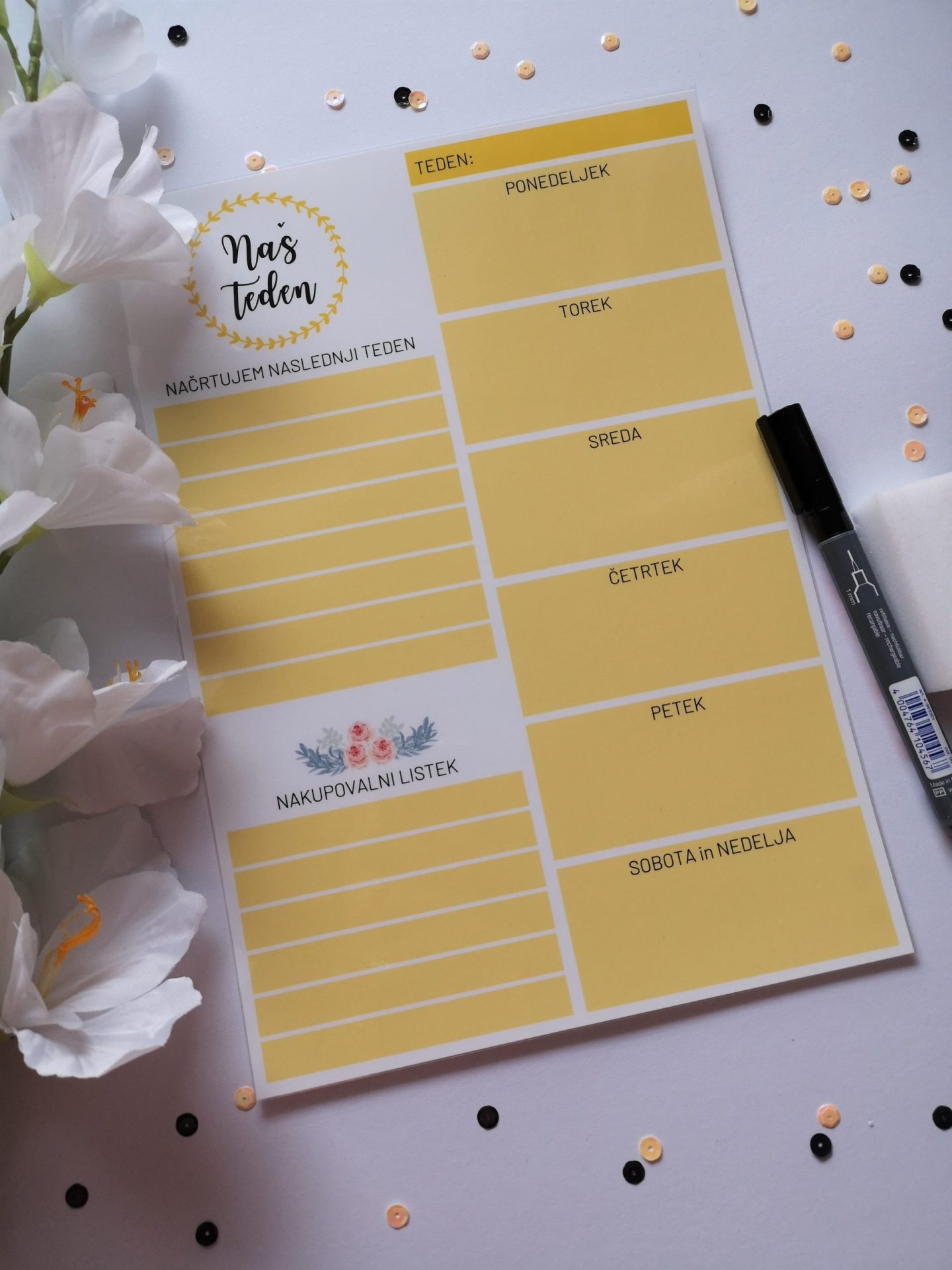 Piši-briši tedenski planer je vsekakor nujno potreben v vsaki družini. Na njega vpisujete vse pomembne dejavnosti in opravke, katere ima celotna družina. Na planerju je tudi prostoček za načrtovanje in nakupovalni listek.